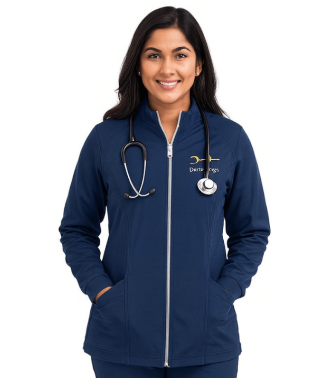 - Warm your winter days with this stylish scrub jacket that is tailored to fit your body.