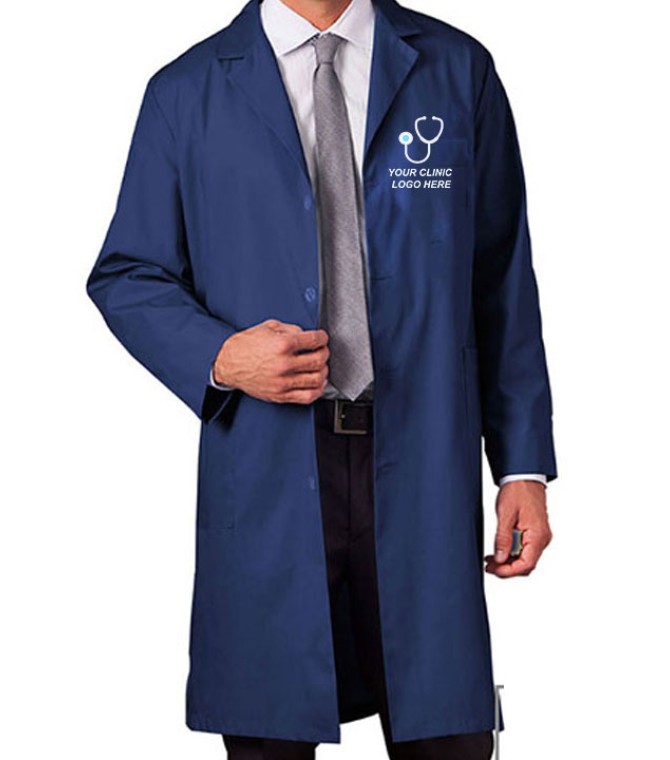 - The Unisex Long Medical Lab Coat is a uniform tailor unisex long lab coat that features a notched lapel collar and button closure made from long-lasting comfort and durability.