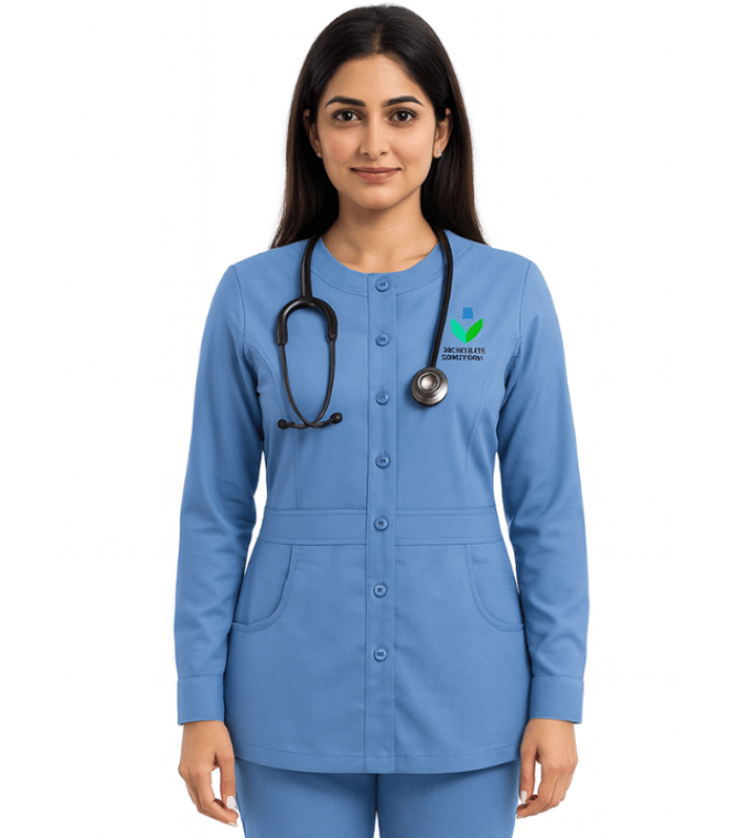 - The Uniformtailor exclusive Women's Full Sleeves Button Front Scrub Jacket is made from durable, fade-resistant fabric, providing you with a long-lasting scrub jacket to rely on.